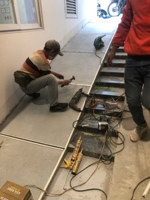 5) Thi công chống trượt ram dốc bằng thanh composite phẳng cho tòa nhà 22 Láng Hạ và 62 Nguyễn Trường Tộ
