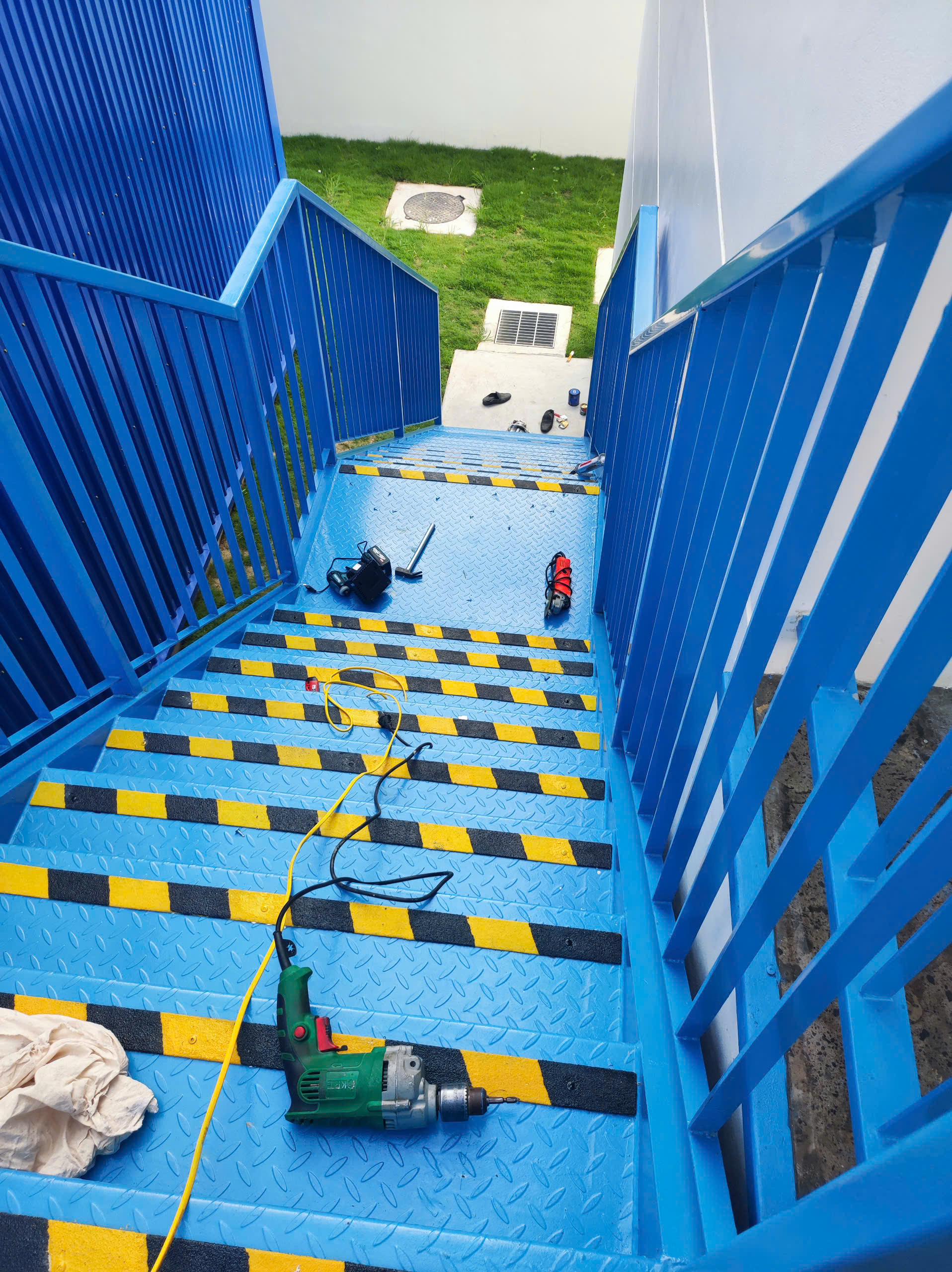 Dưới đây là cầu thang thép gân được xử lý lại bằng thanh composite chống trượt