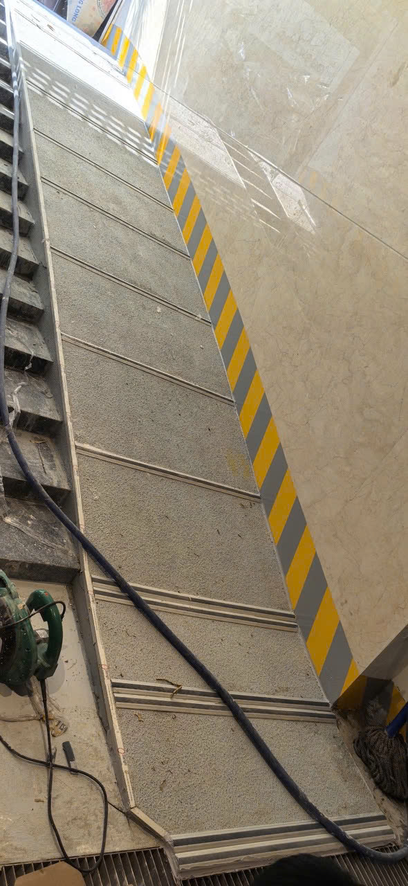 5) Thi công chống trượt ram dốc bằng thanh composite phẳng cho tòa nhà 22 Láng Hạ và 62 Nguyễn Trường Tộ